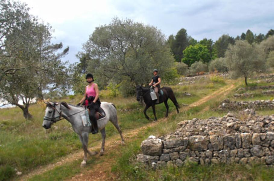Journée détente à cheval/poney au bord du lac en passant par le château Rémilier,sentiers méditerranées ( chênes lièges, bruyères, pins, arbousiers ...)