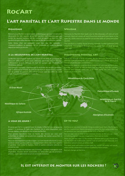 > Le Roc-Art vous invite à découvrir la diversité de l’art pariétal des 5 continents depuis 50 000 ans et vous propose en prime de vous exprimer à votre tour et de participer à une œuvre collective et vivante.