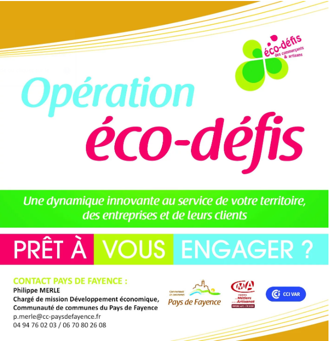Avec le soutien de la Chambre des Métiers et de l’Artisanat (C.M.A.) ainsi que la Chambre du Commerce et de l’Industrie (C.C.I.) du Var, une convention partenariale a été signée pour le développement des Eco-défis.