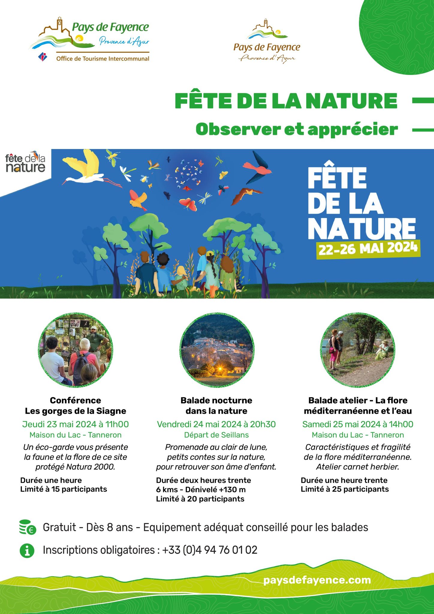 Du mercredi 22 au lundi 26 mai, c’est la fête de la nature. A cette occasion, l’Office de Tourisme Intercommunal du Pays de Fayence propose trois animations gratuites. Les places sont limitées et l’inscription est obligatoire.