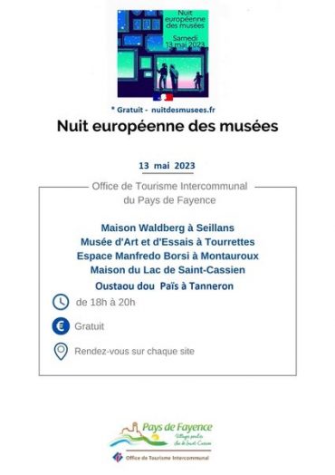 À l’occasion de la 21ème édition des Nuits Européennes des Musées, le Pays de Fayence vous invite à découvrir son patrimoine artistique et culturel sous un nouveau jour…ou plutôt sous la magie de la nuit. Le samedi 17 mai, de 18h00 à 20h00, les musées du Pays de Fayence ouvriront leurs portes gratuitement en soirée, […]