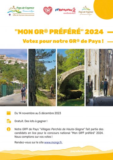 À l’occasion de la nouvelle saison de #MonGRpréféré organisée par la FFRandonnée – Fédération Française de la Randonnée pédestre, le GR® de Pays « Villages Perchés de Haute Siagne » est en lice pour devenir le GR préféré des Français On compte sur votre soutien pour voter pour le GR® de Pays « Villages Perchés de Haute Siagne » […]