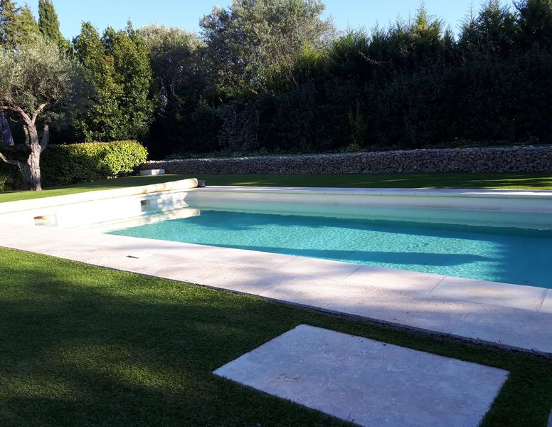 Une agréable piscine se trouve dans des jardins paysagers bien entretenus, typiquement provençaux, entourés de haies, garantissant l'intimité.