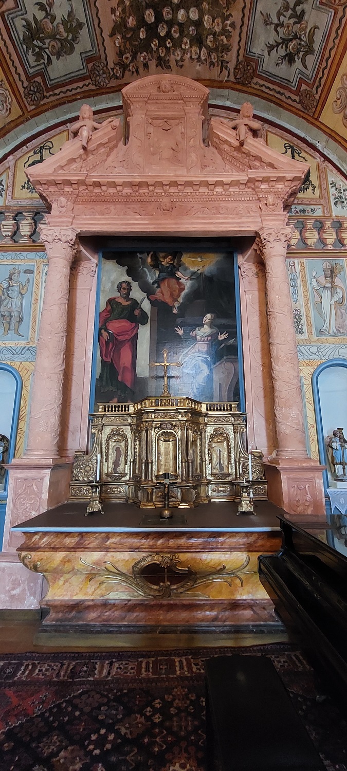 Une jeune femme m’a expliqué l’histoire de la chapelle et de ses phases de restauration, comme le tabernacle en bois doré sur l’autel.