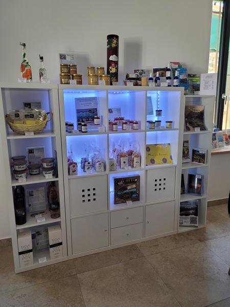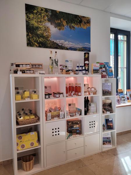 Vous y trouverez des produits de qualité : du miel de garrigue ou de lavande sauvage, du vin bio rosé ou rouge, des biscuits locaux, des produits dérivés du mimosa, de l'hydrolat d'immortelle, une librairie comprenant des cartes IGN pour vos randonnées pédestres ou à vélo, des topo guides, des livres photos du Pays de Fayence, des ouvrages sur le patrimoine local.