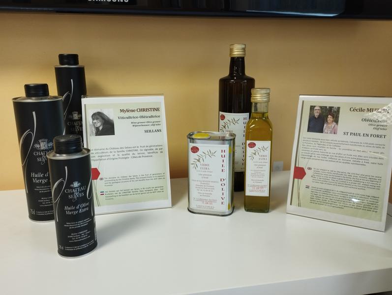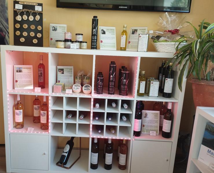Vous y découvrirez des vins, huile d'olive et biscuits de nos producteurs locaux, des petites idées de cadeaux, savons, porte-clé, bougies.,tous issus et 100% fabriqués en Pays de Fayence.