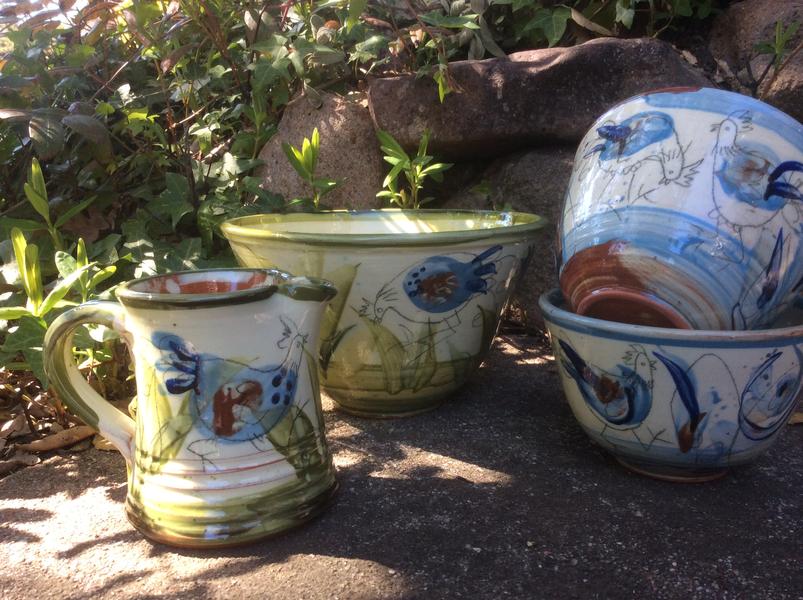 Vaisselle de service en terre vernissée. Atelier ouvert lundi, mardi et samedi sur rendez-vous.