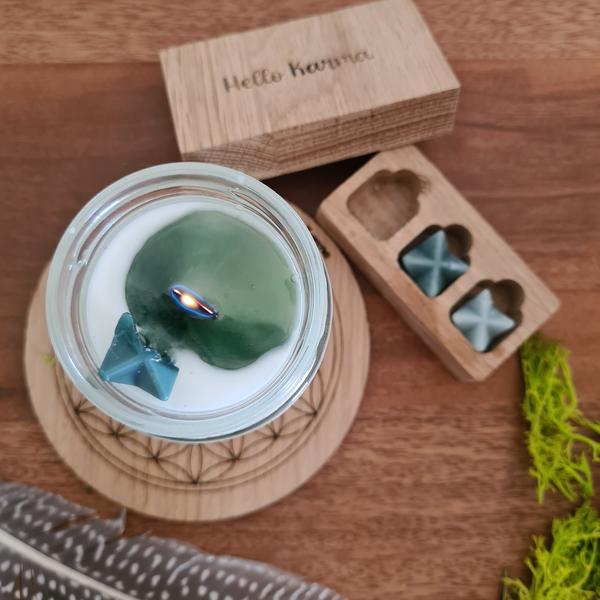 Hello Karma propose des bijoux et bougies de lithothérapie avec oracles. Toutes nos créations énergétiques sont fabriquées en conscience dans le Var