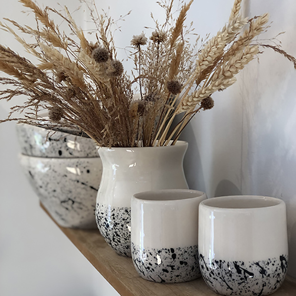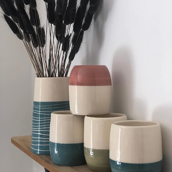 Fabrication artisanale de vaisselle en faïence ( tasses, mugs, assiettes, bols..) ainsi que des pièces décoratives comme des vases.