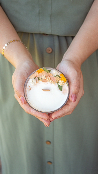 Créatrice multipassionée à double casquette, je créer à la main des bijoux à partir de fleurs séchées en inclusion sous résine de haute qualité. Vous trouverez également des bougies et fondants parfumés fabriqués en cire végétale de colza européenne et fragrances de Grasse.