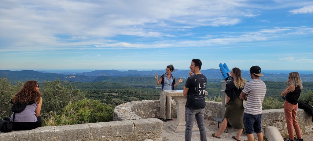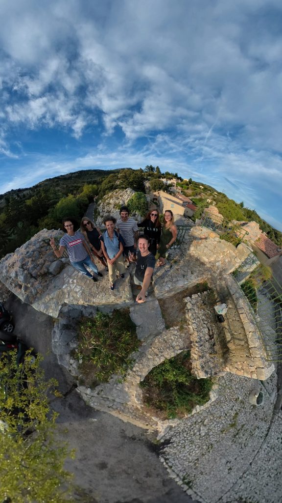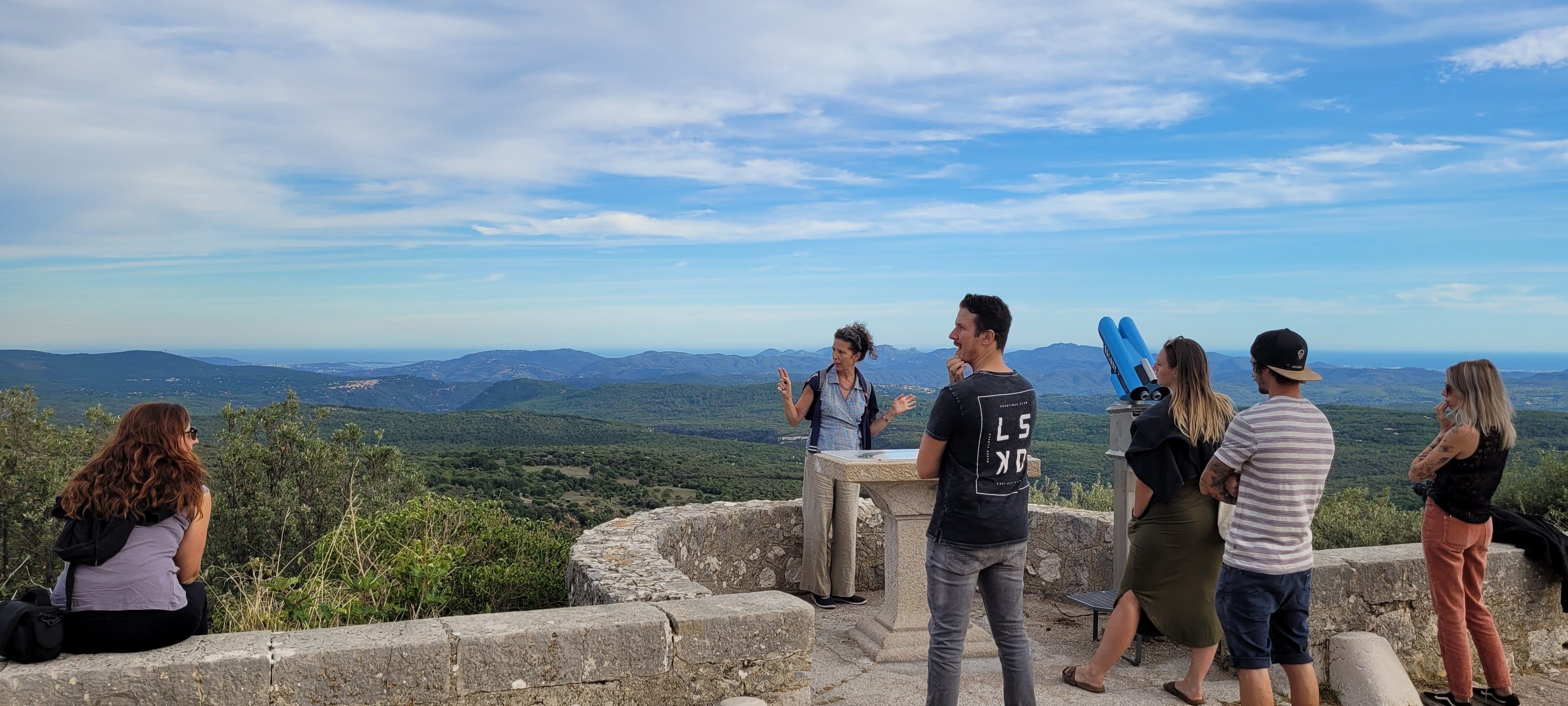 Johanna, Bastien, Jessica, Laurie et Romain du Club Ambassadeurs du Pays de Fayence se retrouvent avec joie pour admirer la vue.