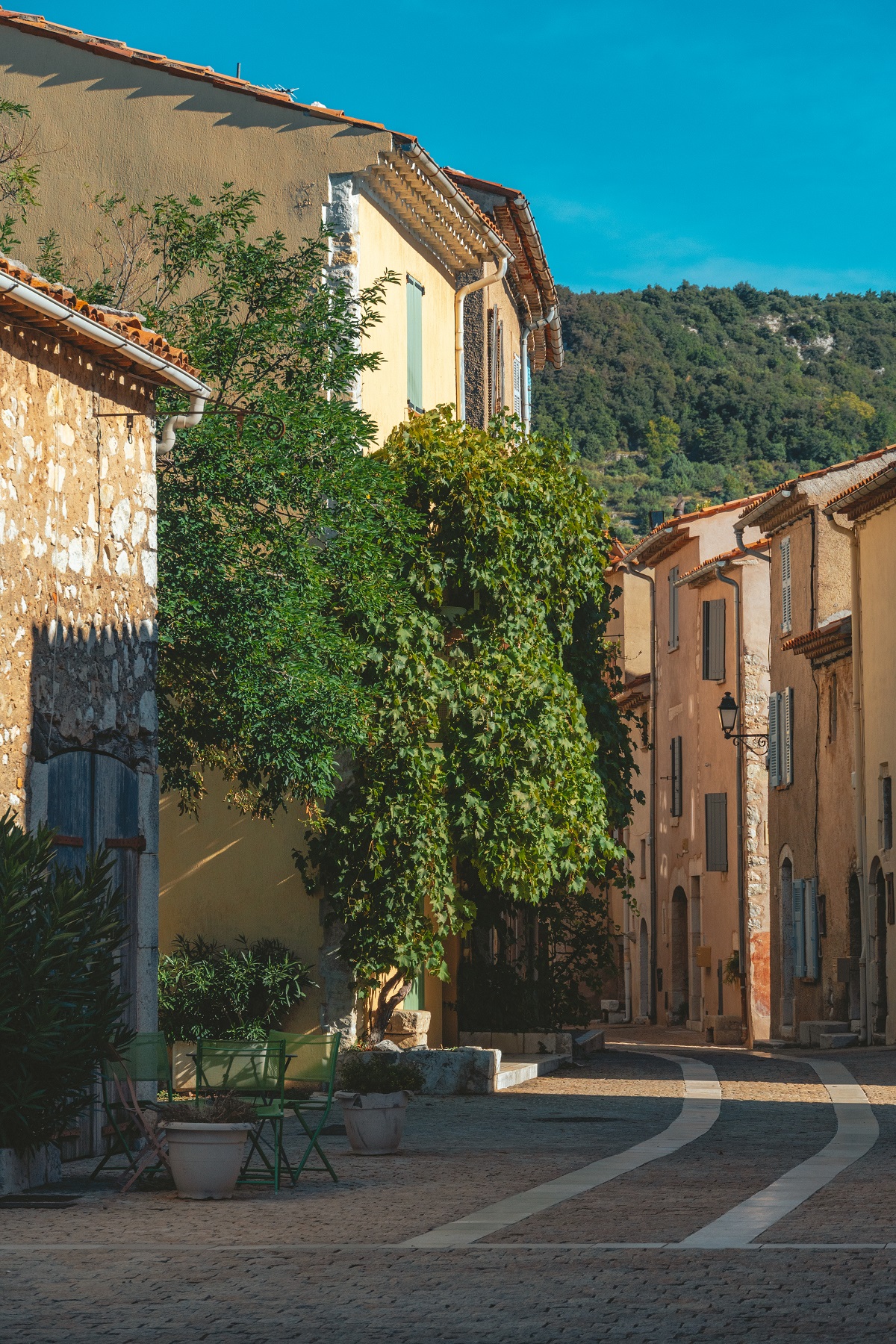 Fin de journée sur le village le plus haut perché du Pays de Fayence, Mons posé sur son éperon rocheux nous accueille pour une soirée étoilée sur la place Saint-Sébastien.
