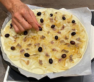 - Ne pas oublier de disposer une petite dizaine d’olives niçoises dessus.