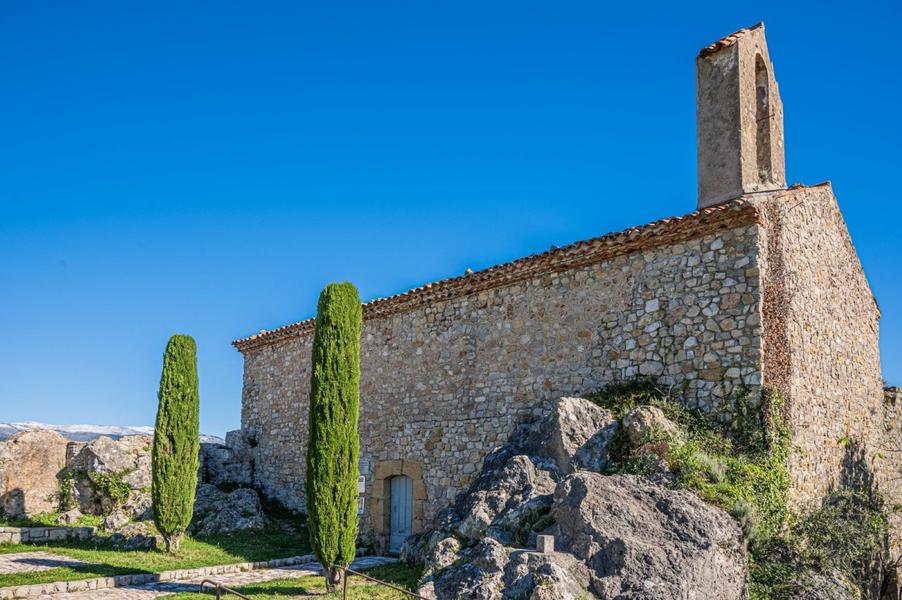 On la découvre en prenant la montée Christian Dior qui débouche sur "l'iéréto", où l'on battait le blé au fléau. Autrefois bâtie sur un piton rocheux par le seigneur d'Aurosa, c'est en 1592 qu'elle fut détruite. Il n'en reste que quelques murs. Depuis l'ancien cimetière, belle vue sur le village de Callian.