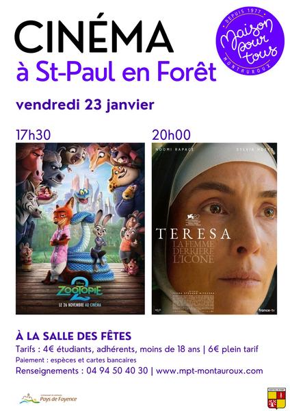 Cinéma à Saint-Paul-en-Forêt. 2 films à l'affiche : Zootopie 2 et Theresa.