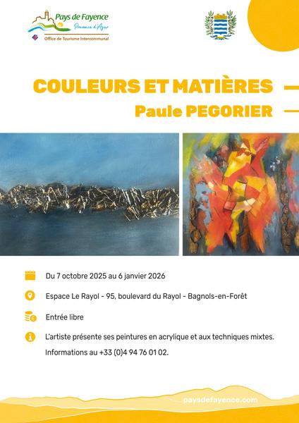 L'Espace "Le Rayol" vous présente une exposition de tableaux de Paule PEGORIER.