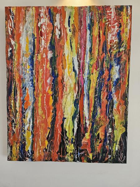 Acrylique, techniques mixtes, collages de papiers, bois, pierres ou sable... Chaque création prend vie différemment, selon l’inspiration du moment.