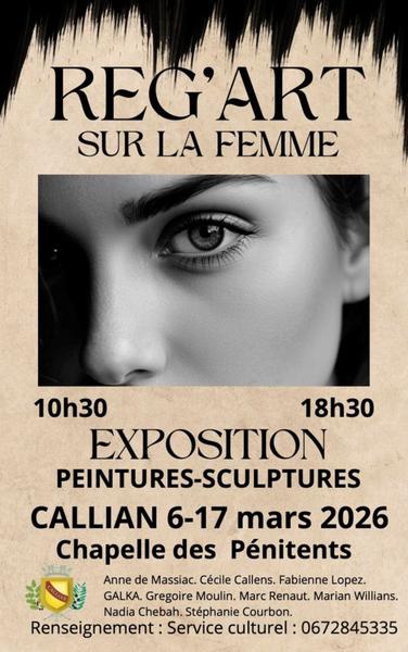 A Callian, pittoresque village de caractère du Var, venez découvrir l’exposition « Reg’ART sur la Femme », présentée par des artistes pluridisciplinaires dans l’écrin médiéval de la Chapelle des Pénitents. Un hommage vibrant et inspirant à la Femme.