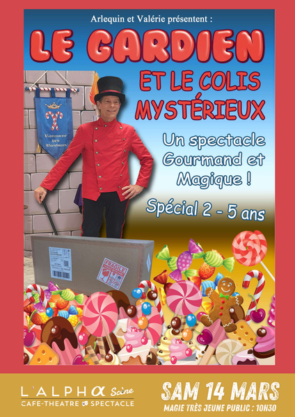 Arlequin, le gardien des bonbons est également le magicien du royaume. Il a commandé une machine à fabriquer les bonbons pour offrir à Mme Clafouti, la confiseuse du royaume. Le paquet est bien arrivé et intrigue beaucoup Mme Clafouti, qui est très impatiente de l'ouvrir. Ils devront amuser nos petits spectateurs avec des tours de magie originaux et interactifs avant d'ouvrir le colis, qui contient cette belle surprise...