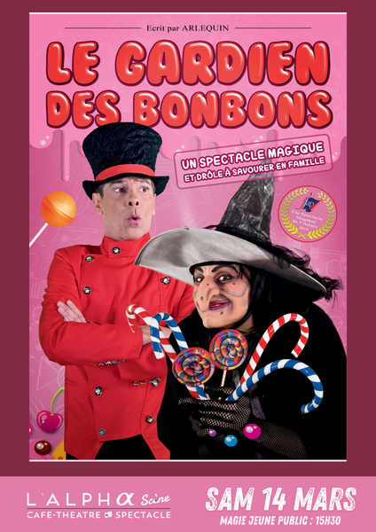 Le Gardien des bonbons est informé qu'une sorcière invisible, gourmande et très farceuse, dérobe les confiseries destinées aux enfants. Avec l'aide de nos jeunes amis, qui seront tous magiciens, le gardien des bonbons fera l'impossible afin de mettre un terme à ces vols. Dans un premier temps, cette sorcière ne sera rendue visible qu'aux yeux des enfants. ("invisible" des adultes). Il faudra percer les secrets magiques, du Royaume de Bonbons, afin de rendre cette sorcière visible de tous et l'écoeurer à jamais des friandises....