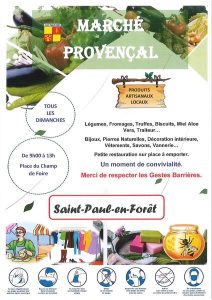 Tous les dimanches matins vous aurez la possibilité d'acheter des produits frais, des produits du terroir auprès d'une dizaine de stands.
