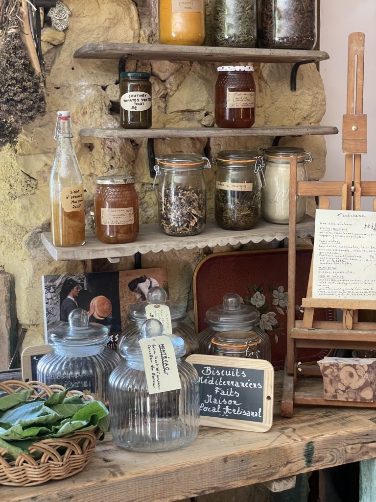 Dans son coin boutique, elle propose confitures, marmelades, champignons séchés, citrons confits, coulis de tomates, sirops et vinaigres aux plantes. Chaque produit raconte une saison, un souvenir, un morceau de nature préservée.