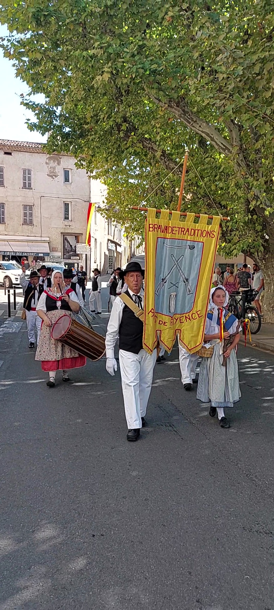 Voilà, ils partent en procession derrière l’étendard des Bravadeurs. Quelle belle procession !
