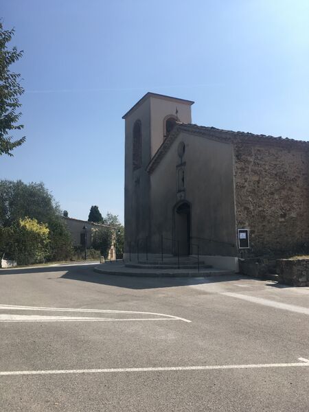 L'église est située au sommet de la colline où la vue embrasse tour à tour le Lac de Saint-Cassien, le Mont-Lachens (1714 mètres), Grasse et le village de Tanneron.