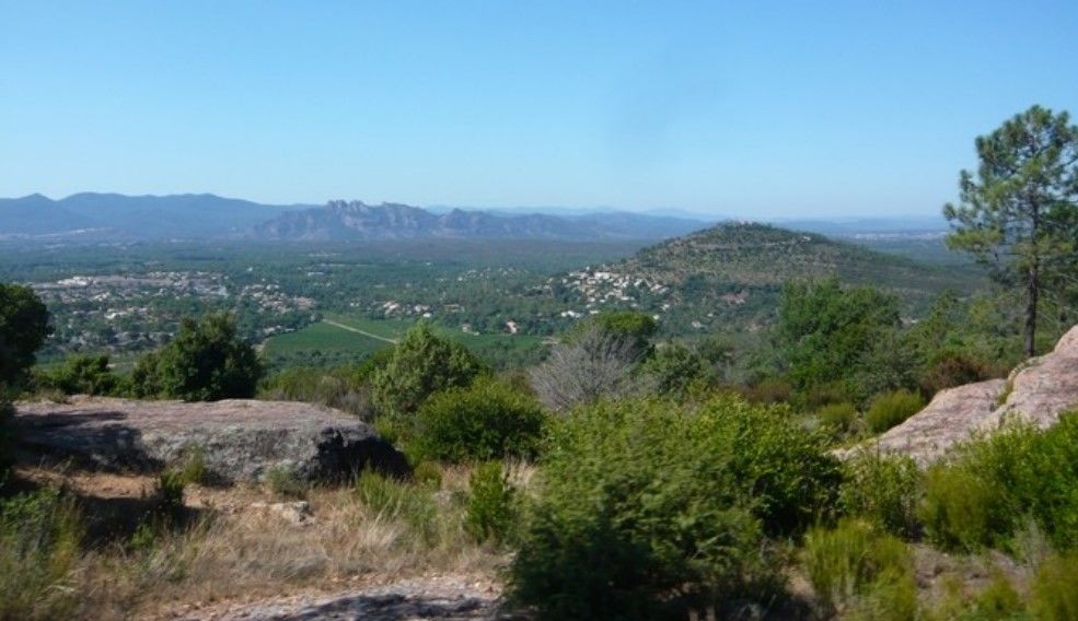 de l’Argens, Saint-Raphaël, Puget-sur-Argens, Roquebrune-sur-Argens et son rocher d’ocre, ainsi que la grande bleue en toile de fond. Un arrêt s’impose autour de la table d’orientation!
