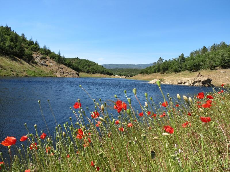 La continuer un moment en surplombant le lac et en passant plusieurs gués, jusqu'à rejoindre plus loin un grand croisement avec panneau de signalisation G535.