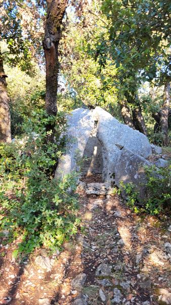 L'une d'entre elles git probablement au sol côté Nord, l'autre a disparu. L'entrée de la chambre est très originale en forme d'ogive, particularité non observée ailleurs.