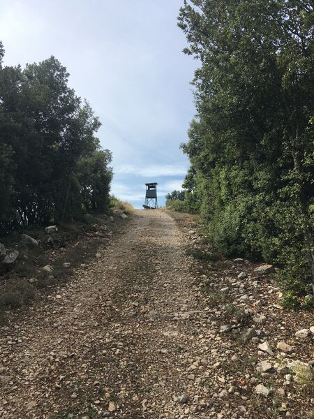 Au premier sommet (ouest) remarquer le petit poste de vigie en dur avec son échelle de guet au service des pompiers et du comité des feux de forêt. En été, ils participent à la prévention et à la lutte contre les incendies.