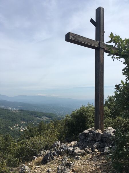 Au calvaire, le deuxième sommet ménage des vues vers le nord et l'est : le centre de vol à voile, les villages perchés du Pays de Fayence, la vallée de la Siagne, les Préalpes...