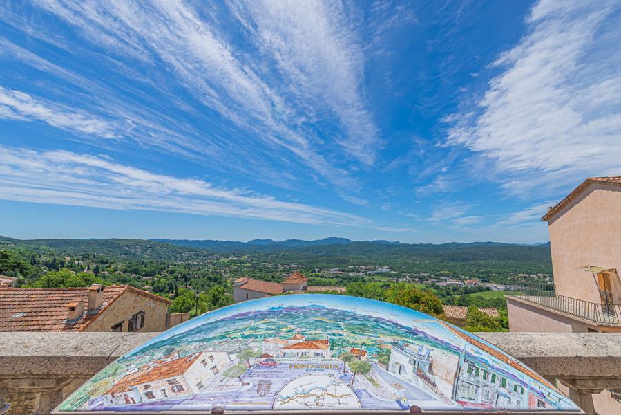 Côté sud, une table d'orientation en pierre lavée créée par Angus Viles, située à côté de l'office de tourisme, vous explique le relief qui s'offre à vos yeux, un panorama à 180° allant du massif du Tanneron, aux roches rouges de l'Estérel, le Rocher de Roquebrune et les contreforts du massif des Maures.