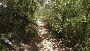 Depuis le stade de Montauroux, continuer tout droit vers la forêt sur le sentier à gauche du bâtiment. A l’intersection, prendre à droite le sentier qui va vous faire passer derrière le parc “Parcabout”, puis descendre jusqu’à se rapprocher de la route Chemin du Stade par laquelle vous êtes arrivés. Ne pas la rejoindre, mais continuer tout droit, traverser le chemin d’entrée d’une habitation résidentielle pour atteindre un sentier juste après dans les bois. Prendre à gauche.