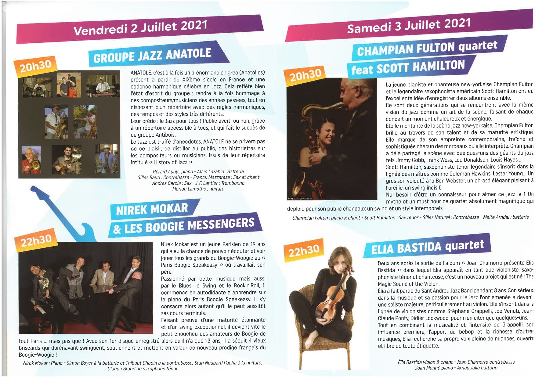 Vendredi 4 Juillet : 20h30- AU FIL DES CORDES et 22h00- SHARON CLARK QUARTET