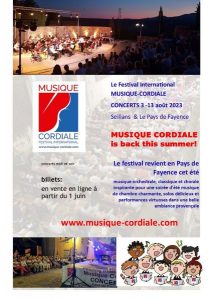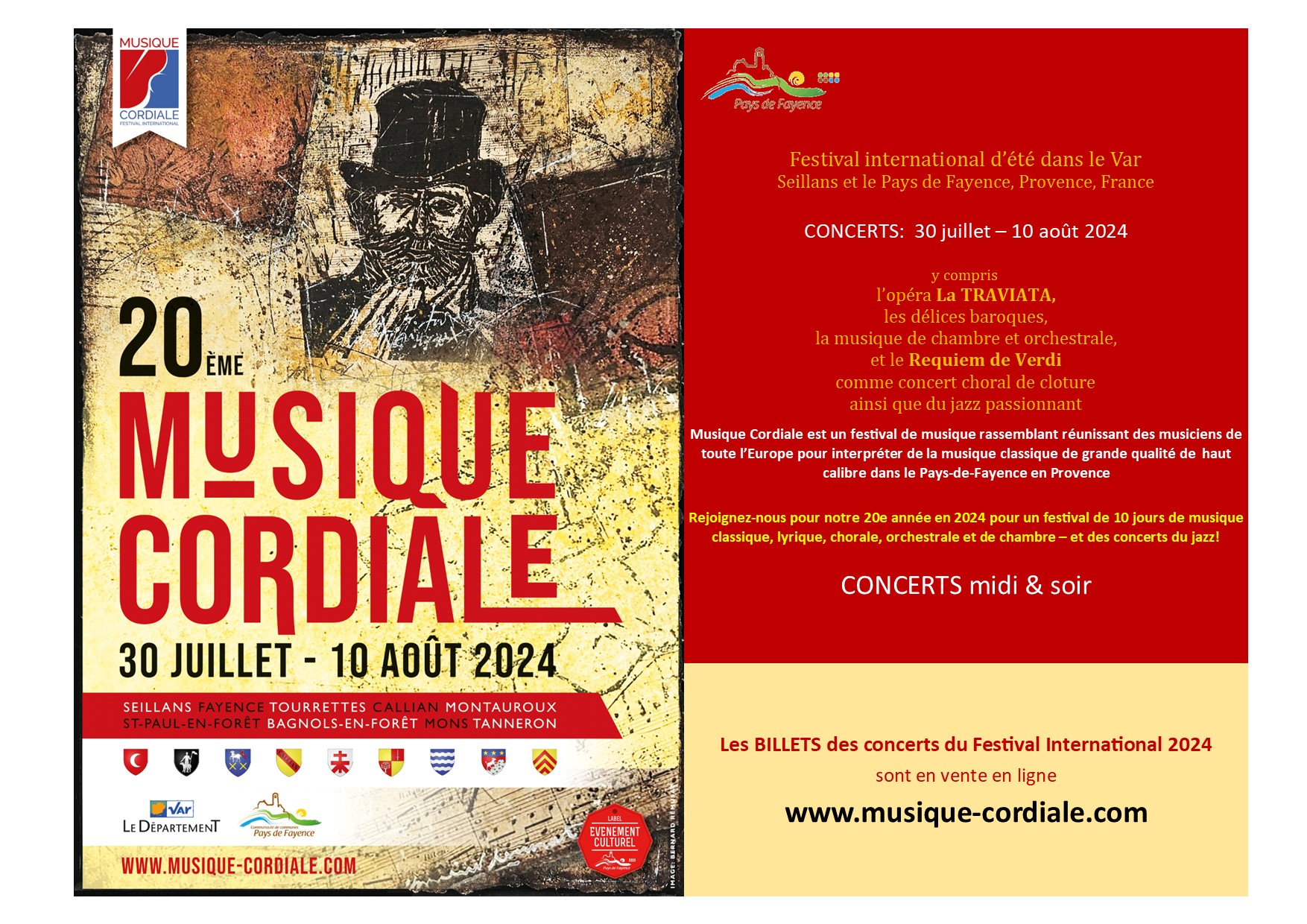 Situé dans les collines du Pays de Fayence, entre Nice et Aix-en-Provence, le Festival International Musique Cordiale est devenu l’un des festivals de musique les plus importants d’Europe.