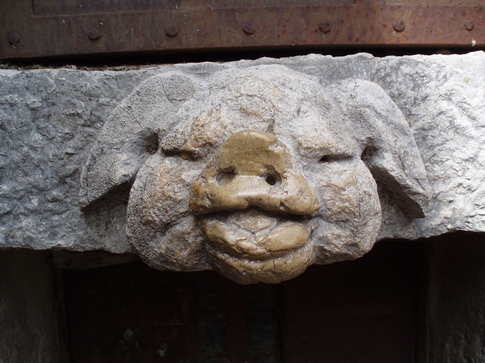 Le petit cochon « Porte Bonheur » c’est une petite curiosité bien cachée au creux de la Tour de l’Horloge, sculptée dans la pierre et dont la maxime est : « O toi qui viens de loin, si tu frottes mon groin, à coup sûr, très grand bien à jamais sera tien ! »