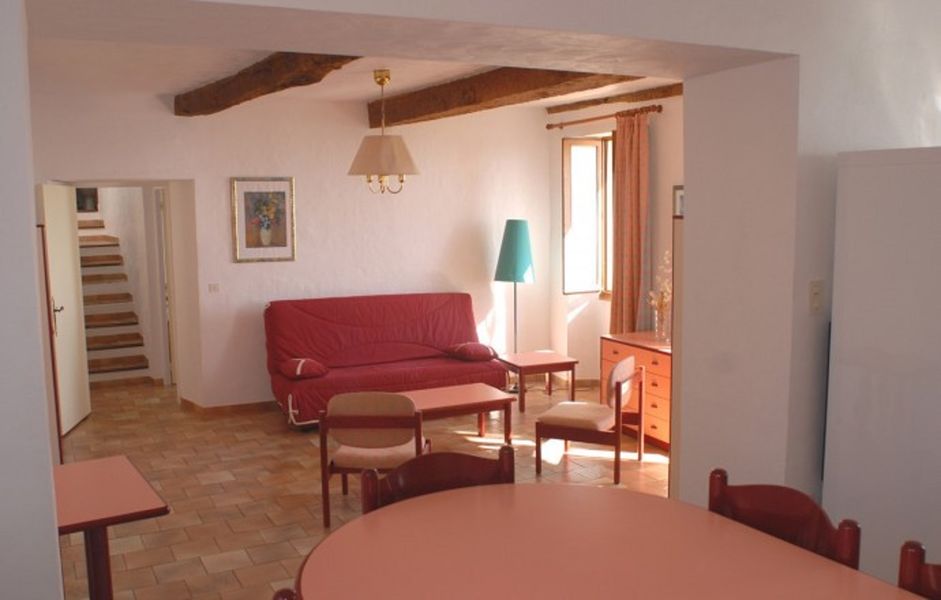 1er étage: grande cuisine/salle à manger communiquant sur salon avec un clic-clac 2 personnes. Demi étage supérieur : une chambre avec un lit double en 140cm et une chambre avec deux lits simples en 90cm, salle de bains, WC indépendant. Chauffage électrique.