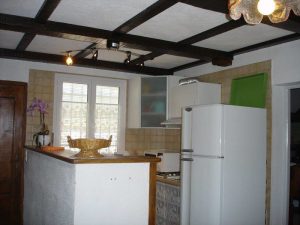 Rez-de-chaussée : Cuisine, séjour salon avec canapés, cheminée (1/2 stère de bois 20 euros)