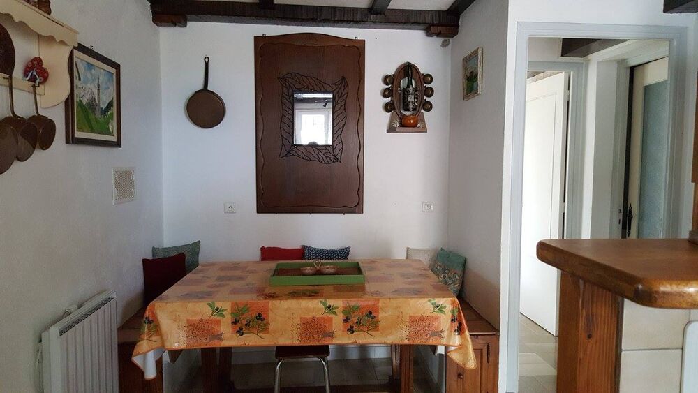1 chambre avec 1 lit 2 places (160cm), 1 grande chambre avec 1 lit 2 places (140cm) et 2 lits superposés (140cm et 90cm), salle de bains avec balnéo wc. Chauffage électrique.