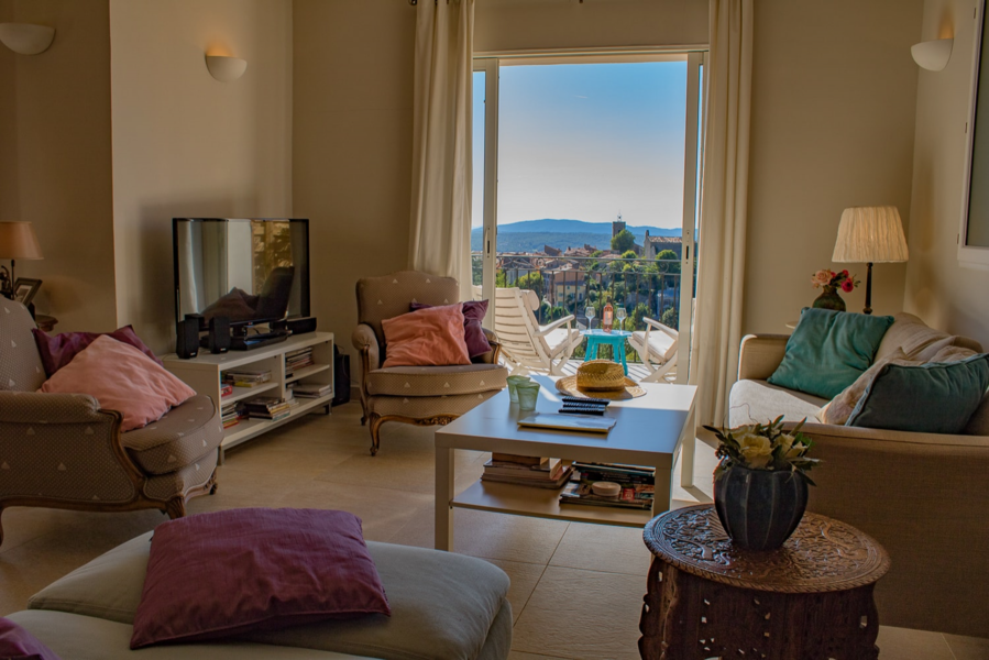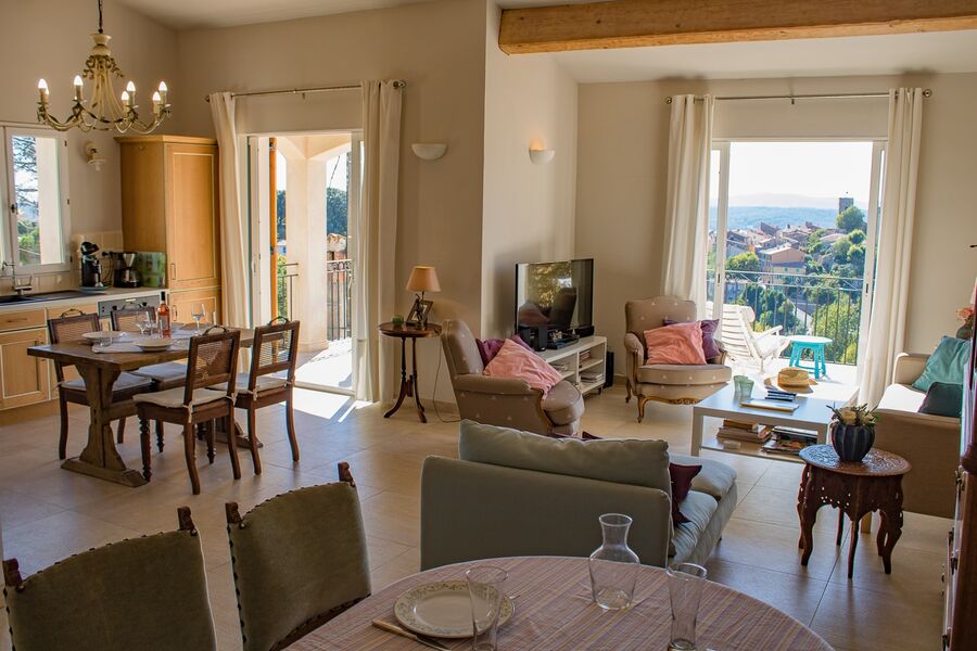 Prenez de la hauteur depuis la spacieuse terrasse située face au salon, au 3ème étage. D’ici vous surplomberez littéralement la Provence. C’est un face à face avec ce charmant village de Provence qui vous attend. Un déjeuner en tête à tête avec Montauroux.