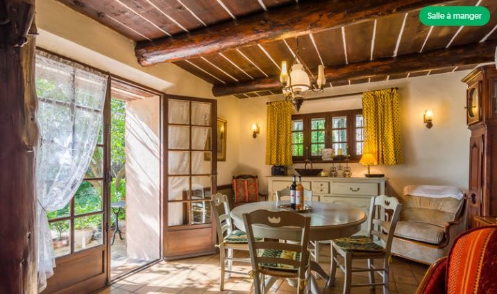 Annexe (22m²) avec climatisation : cuisine avec coin repas, TV et cheminée, 1 chambre 1 lit 2 pers, salle d'eau, WC. Chauffage électrique. Bois non fourni. Climatisation réversible.