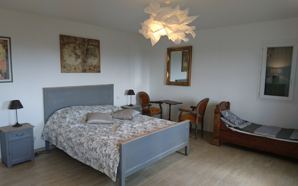 Calme et vue exceptionnelle sont au rendez-vous. Terrasse avec salons de jardin, tables de ping-pong. Rez-de-jardin : cuisine bien aménagée, salon avec canapé, un cellier, une buanderie, une chambre avec un lit double en 160x200 avec sa salle d'eau et WC. À l'étage : une chambre avec un lit double en 140x190 et un lit simple, une chambre avec trois lits simples, et une chambre avec un lit double 160x200, une salle de bain et une salle d'eau et 2 WC.
