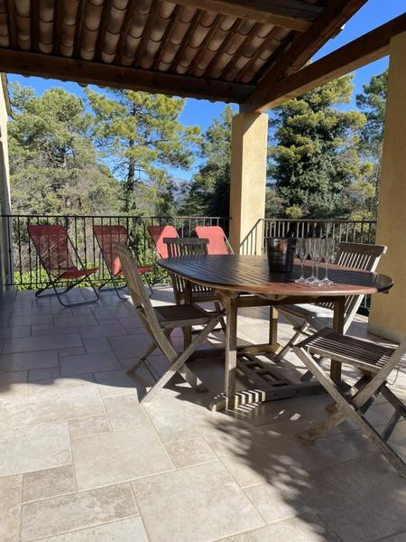 A un km du village de Montauroux, loin des grands axes routiers, vous assurant le CALME auquel vous aspirez, vous ouvrirez vos volets sur la forêt de pins ou sur les massifs de lavandes et prendrez vos repas sous la treille ou la terrasse couverte de votre jardin.