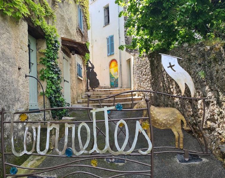 A Tourrettes, village musée à ciel ouvert, la ruelle La Traverse des Arts, délicatement ornée de peintures d'artistes originaires du Pays de Fayence et d'Italie, de portails ouvragés en fer forgé, vous invite à une promenade enchantée à travers les Arts.