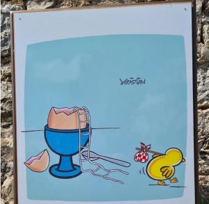 Des peintures inattendues, des trompe l'œil posés à même les portes et les façades des maisons, des sculptures originales de fer forgé et de verre installées sur des belvédères,