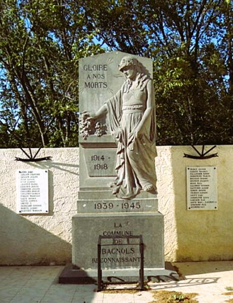 Érigé sur décision du conseil municipal le 17 octobre 1920, le monument aux morts de Bagnols-en-Forêt fut construit grâce à une souscription publique et l’appui de la commune. Réalisé par l’entreprise Rombaux-Rolland, il illustre par un haut-relief la figure allégorique de la France déposant une branche de laurier sur un tombeau, en hommage aux enfants de la commune « Morts pour la France » lors de la Première Guerre mondiale. Situé face à l’église, il est aujourd’hui le lieu central des commémorations officielles et de la mémoire collective de la commune.