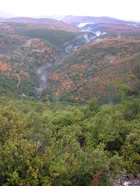 Milieu forestier typique du haut Var formé de chênes surplombant la Siagnole.
