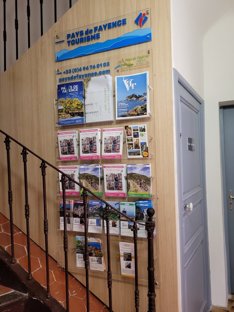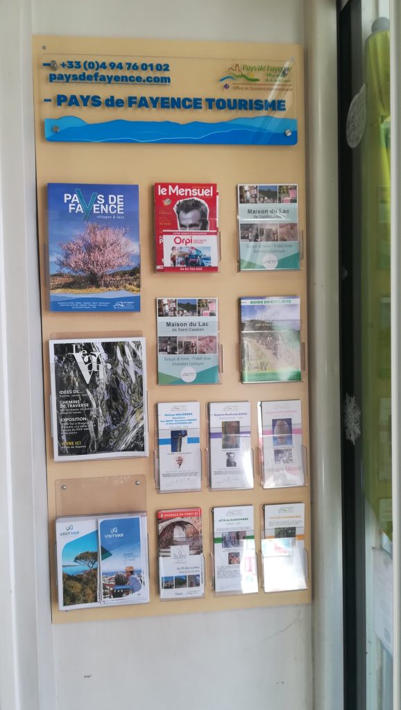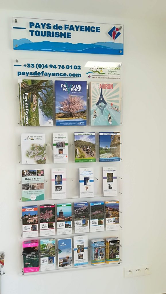Cet aménagement est installé par l’Office de Tourisme Intercommunal du Pays de Fayence dans des lieux fréquentés et stratégiques afin de mettre à disposition des visiteurs des brochures du Pays de Fayence.